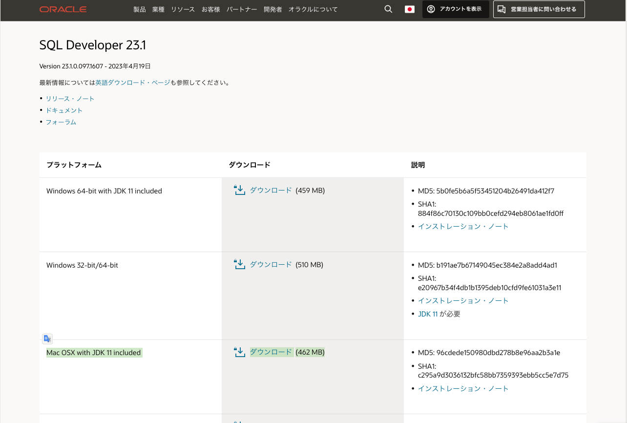 ・SQLDeveloperをダウンロード