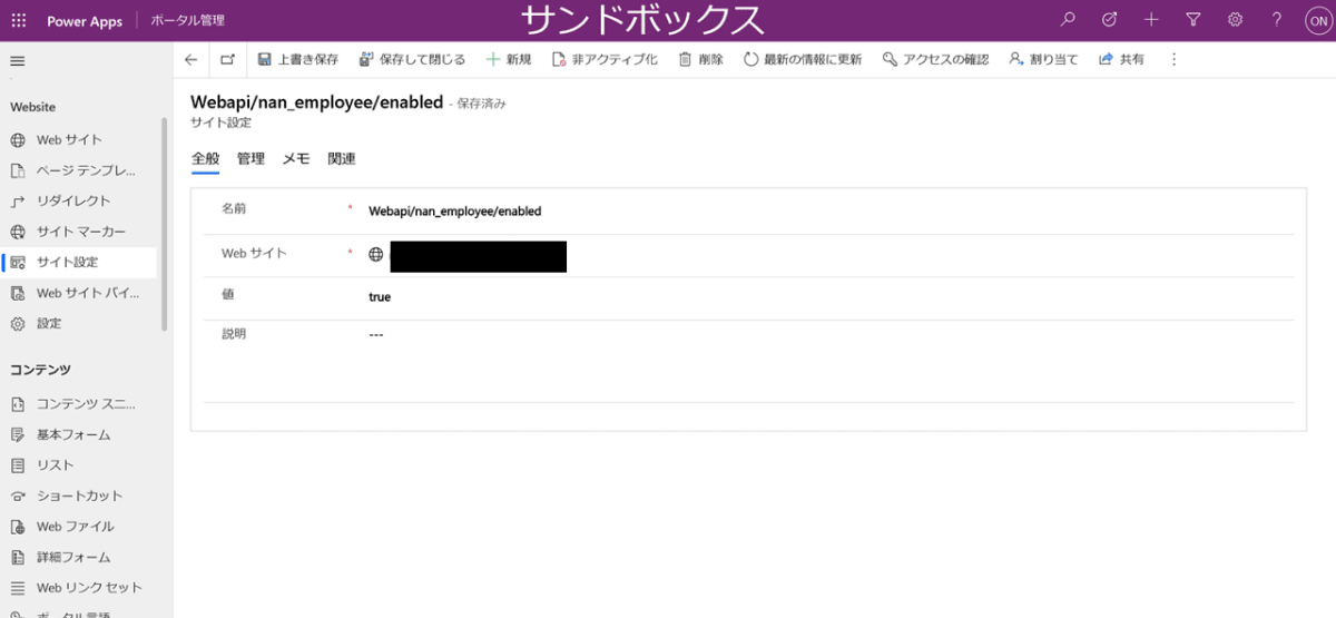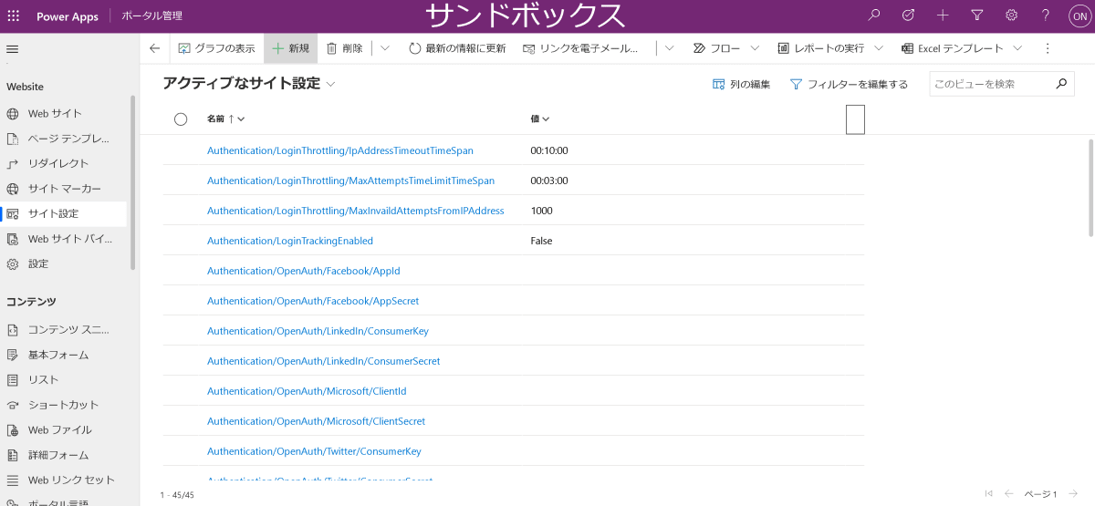 ポータル管理アプリ から サイト設定 をクリックし、新規をクリックします。