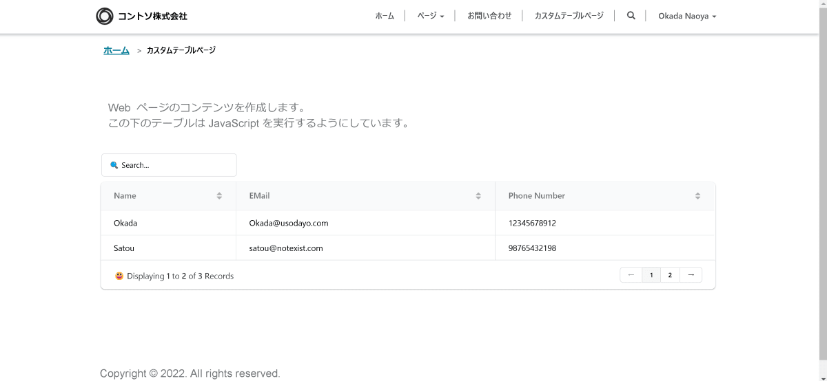 {% comment %} Dataverse テーブルデータでの Grid.js の実行 {% endcomment %}