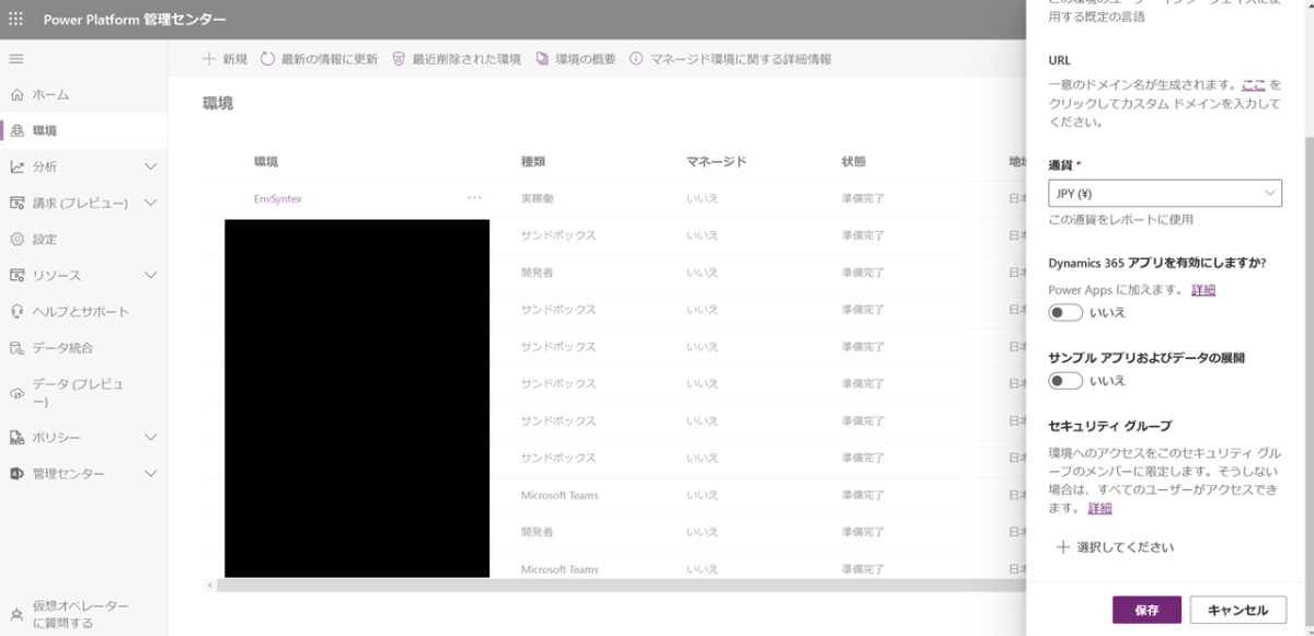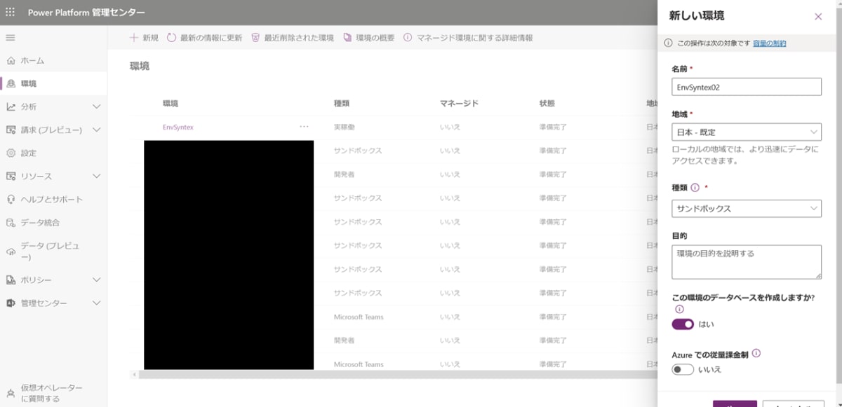 それから、AI Builder のクレジットの消費を管理する Power Platform の環境を作成します。
