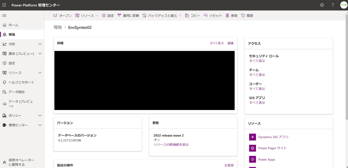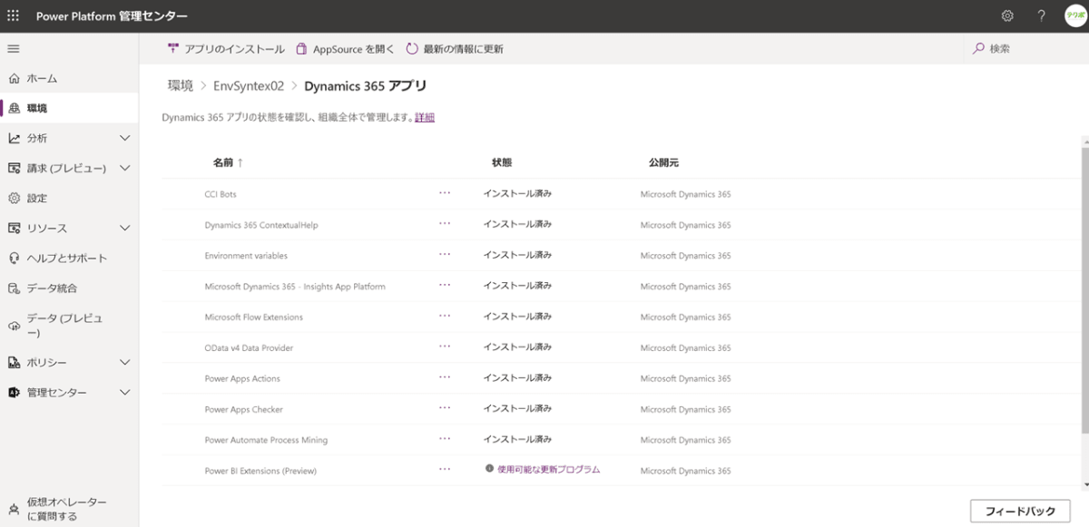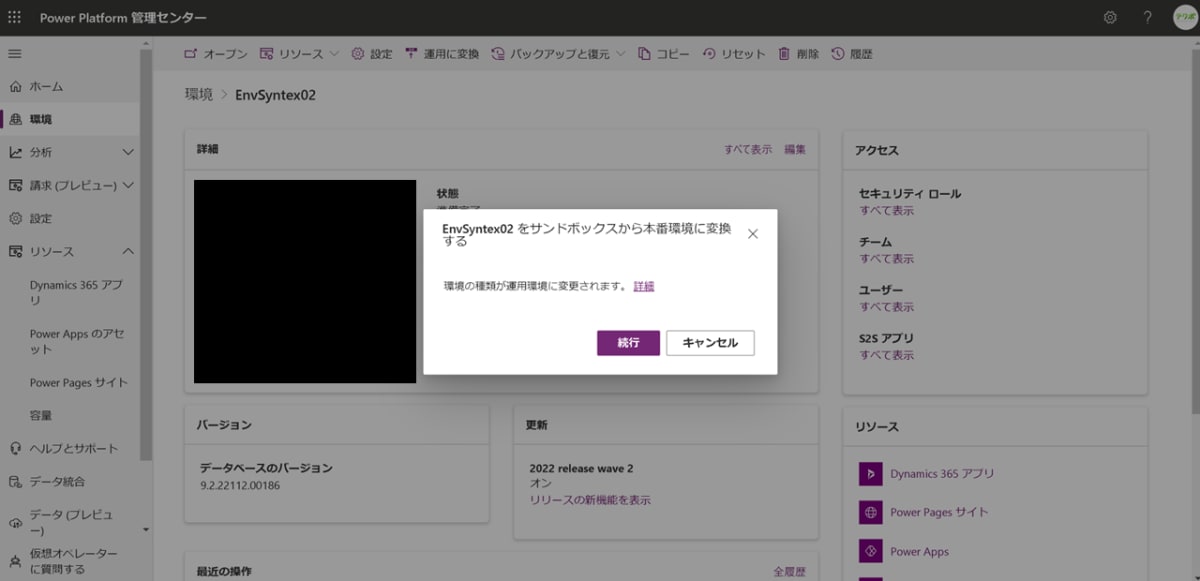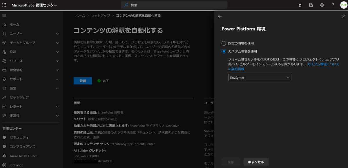 ※実運用の状態になっていないと、Microsoft Syntex の設定作業時に環境を選択できません。