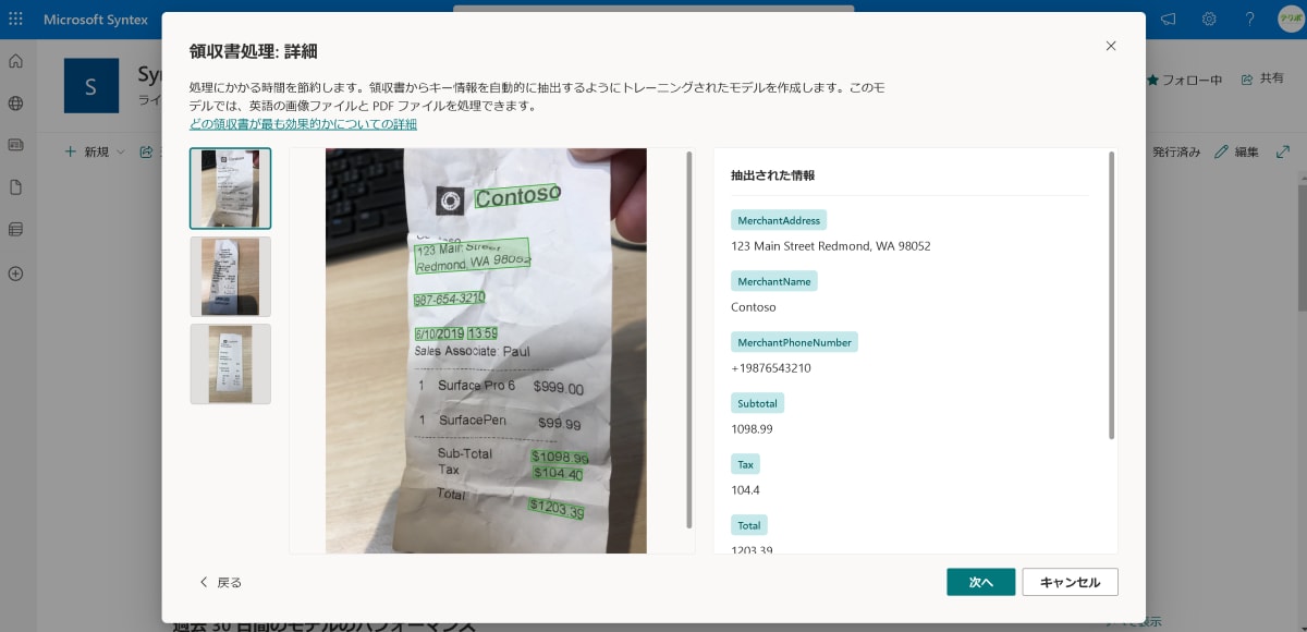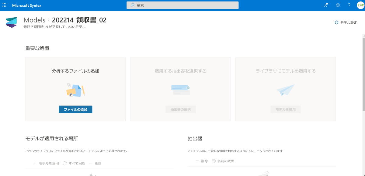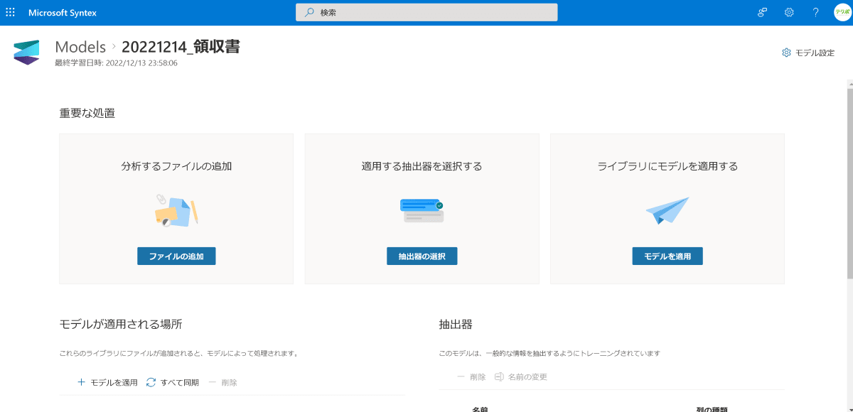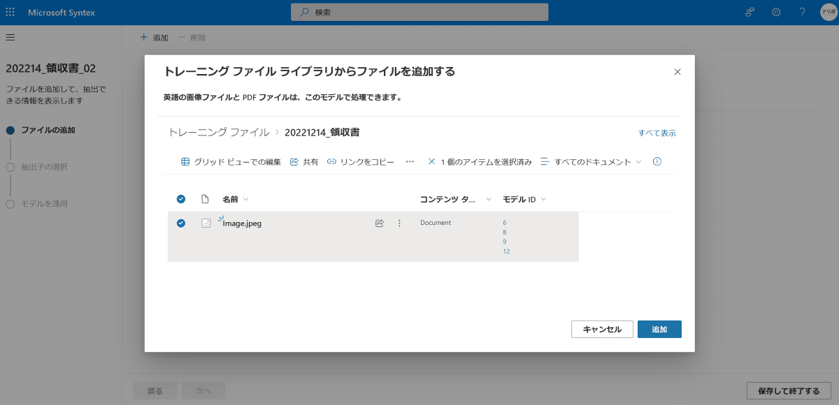 本件では、事前構築済みモデルの領収書処理を選択します。