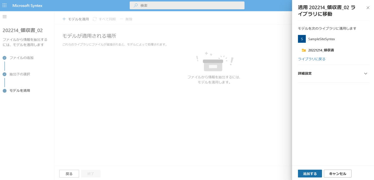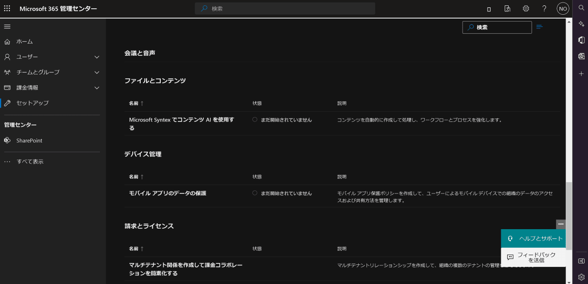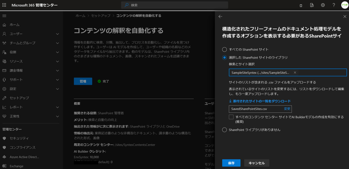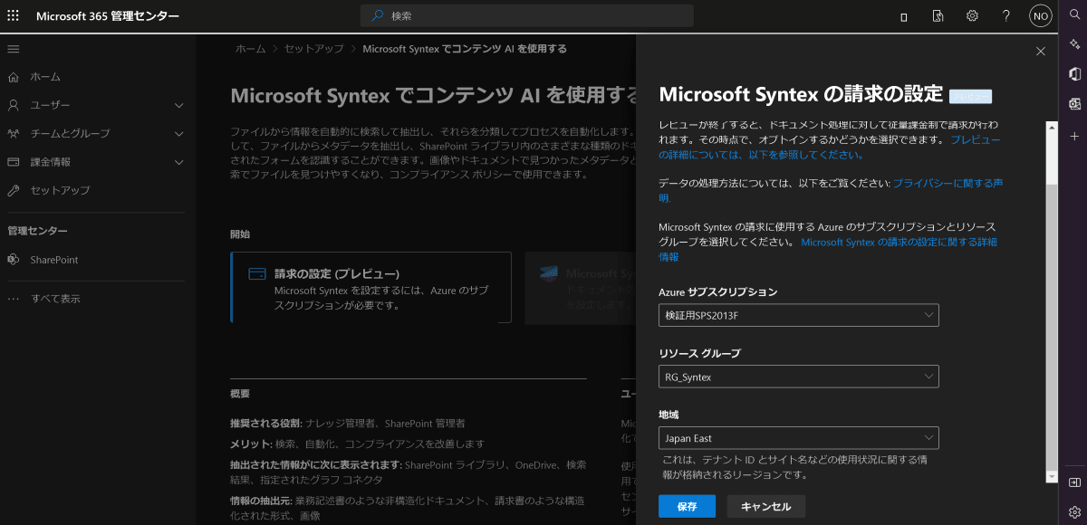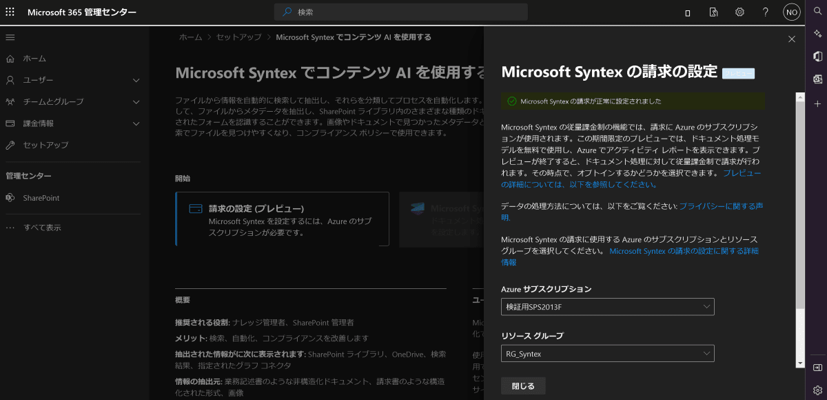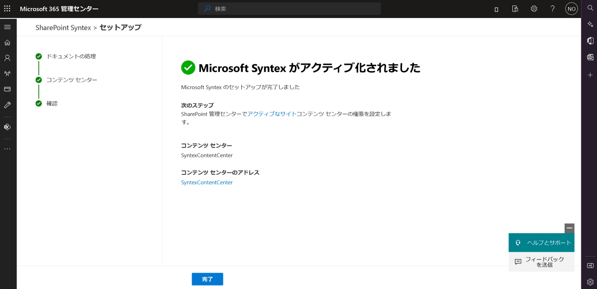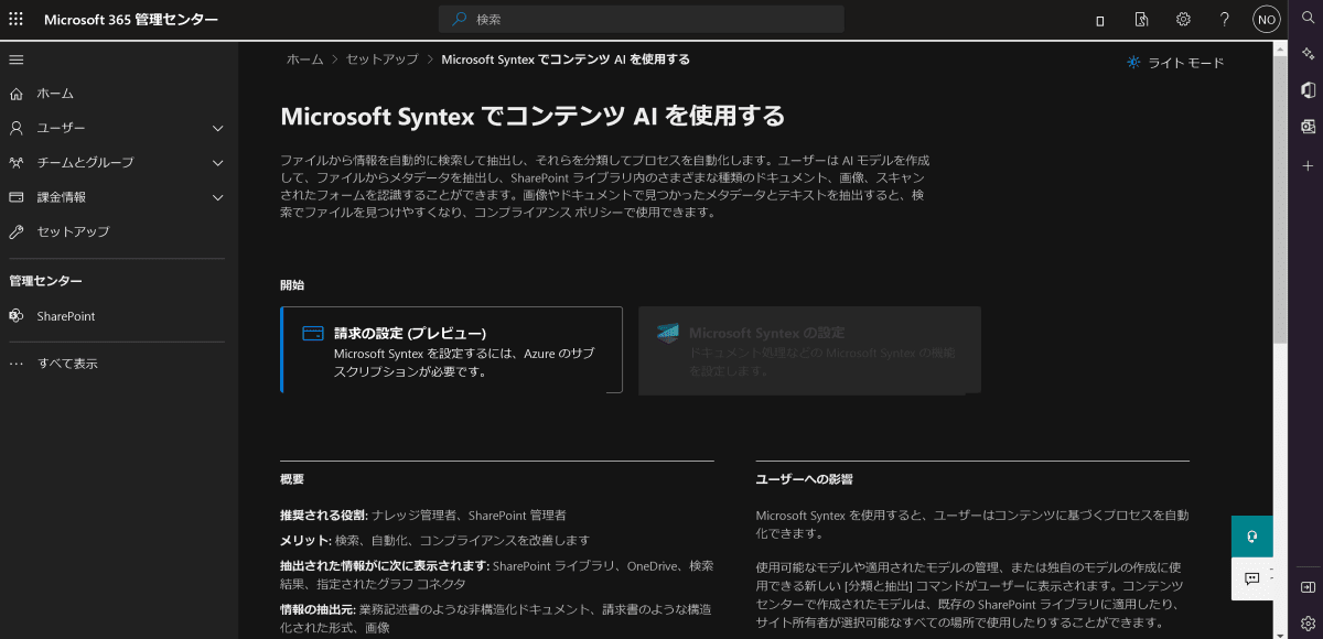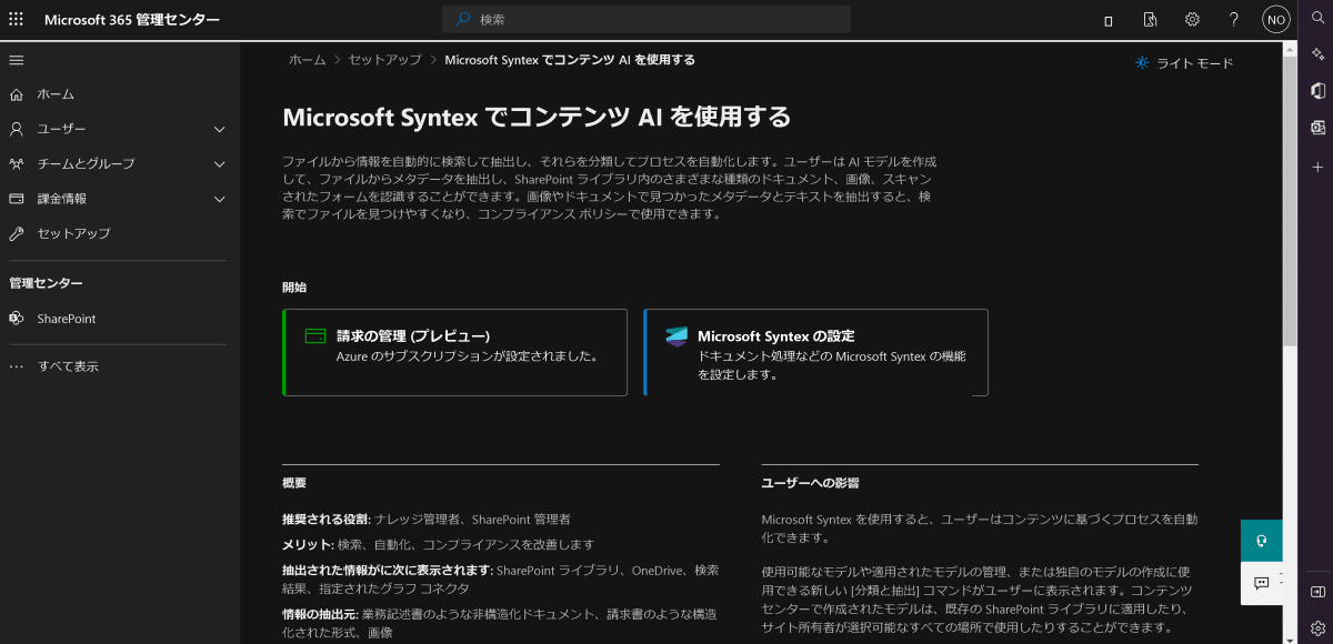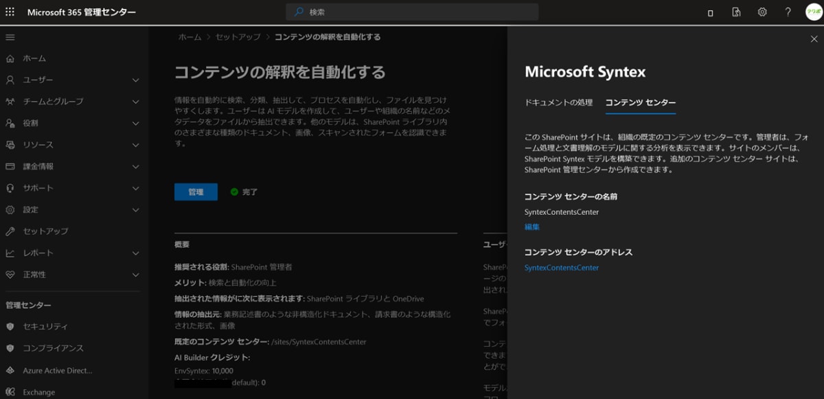 最後に、管理サイトのセットアップから、Microsoft Syntex の設定を行います。