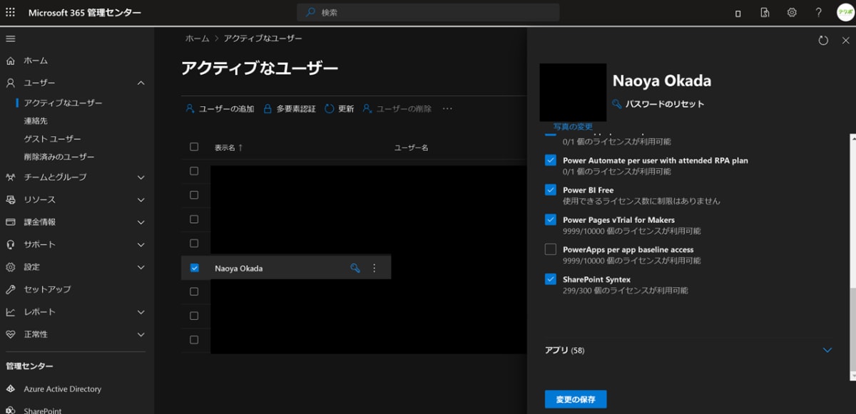 - 次に、取得したライセンスを操作するユーザにライセンスを付与します。