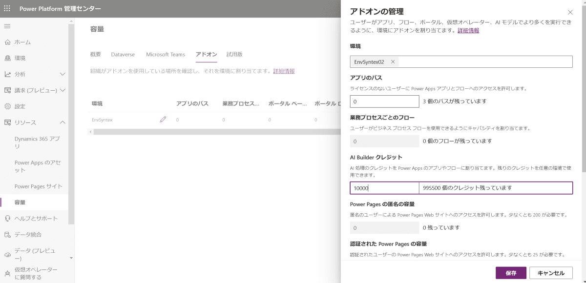 Microsoft Syntex はファイルを処理するごとに、ここで割り当てられた AI Builder のクレジットを消費するようです。