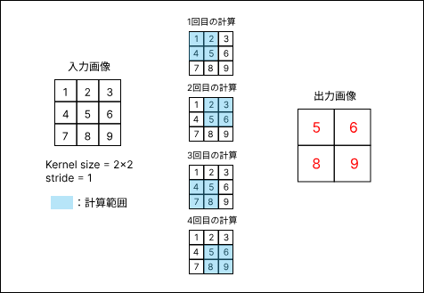 - ストライド (Stride): フィルタを画像上で動かす際の「歩幅」。