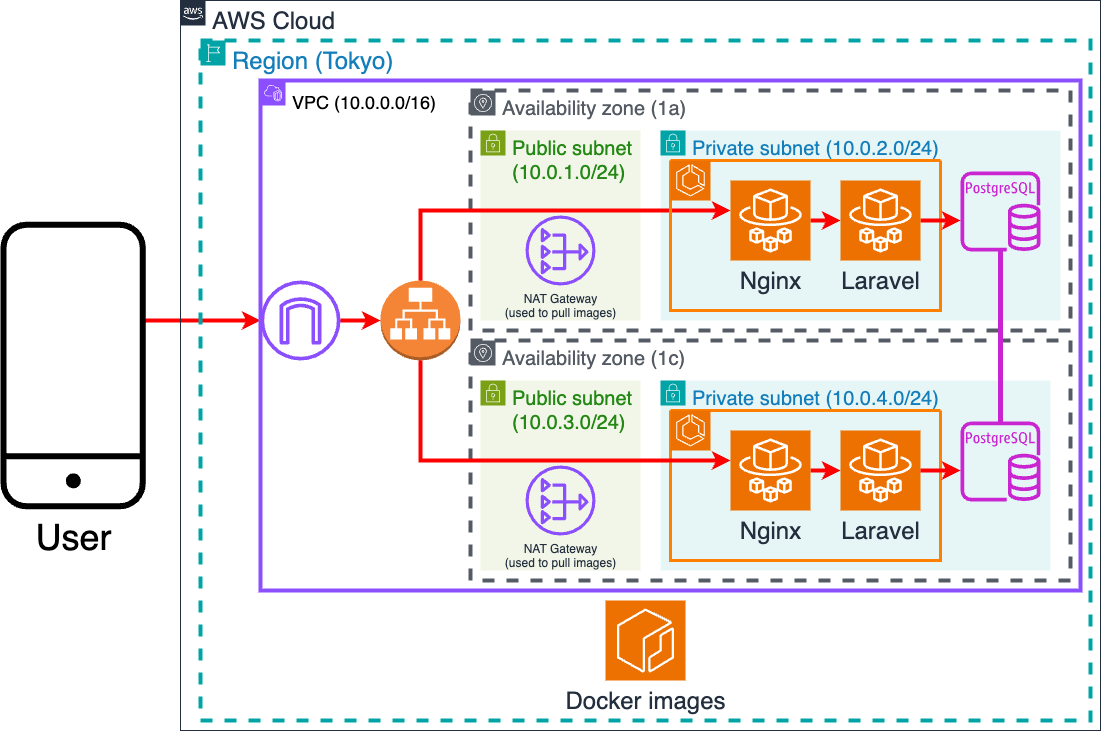 後述の通り基本的にAWS側のサービスの構成を変更する必要はなく、Dockerイメージの変更とECSタスクの設定を少し変更するだけで対応できる。