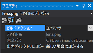 - ビルドアクションは"コンテンツ"(なしでもいいと思います)