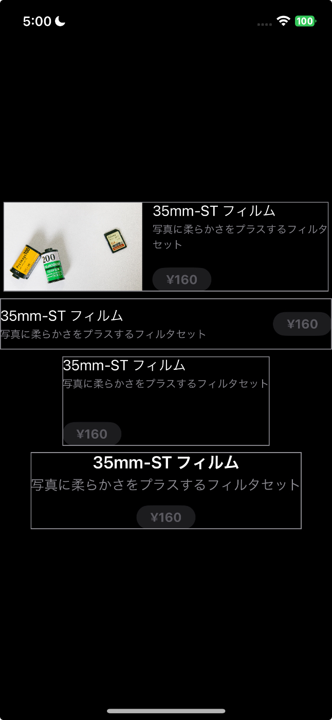 引数に課金アイテムのProductIDを指定することで、指定したProductIDのアイテムを購入するためのViewを表示することができます。productViewStyle(_:) でViewの外観を変更することができます。