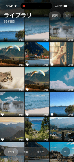 カメラ画面は写真やビデオを撮影するためのメイン画面です。いつも最も頭を悩ませるのが、この画面のレイアウト設計です。カメラ画面は性質上、カメラプレビュー領域が画面の半分以上を占めるため、9:16(FHDや4K)といった縦長のプレビューを画面いっぱいに表示すると、残る領域はごくわずかになります。その限られたスペースをどう活用するか、プレビューに重ねて表示するUIコンポーネントをどこに置くか、またそれらの透過度をどの程度にするかといった点を丁寧に考えながら実装する必要があります。