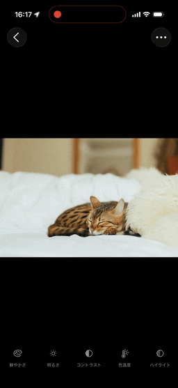 写真編集画面は、写真一覧で選択した写真を編集するための画面です。写真編集まわりのコードは、前バージョンで使用していたものをほぼそのまま移植しています。編集値を調整する目盛タイプのスライダーについては、カメラ画面で利用しているコンポーネントを流用しました。
