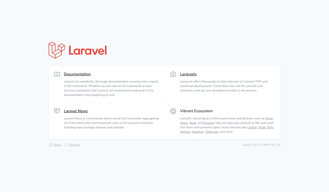 これでPHPサーバーのコンテナが立ち上がり、Laravelのプロジェクトが作成出来ました。