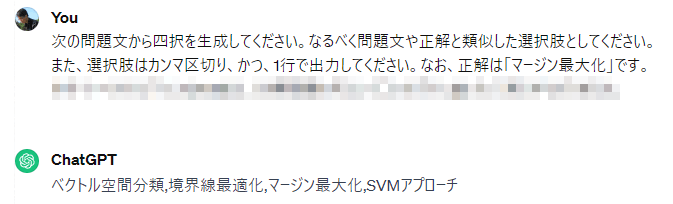 そして、その文章をChatGPTに入力し、選択肢を生成します。