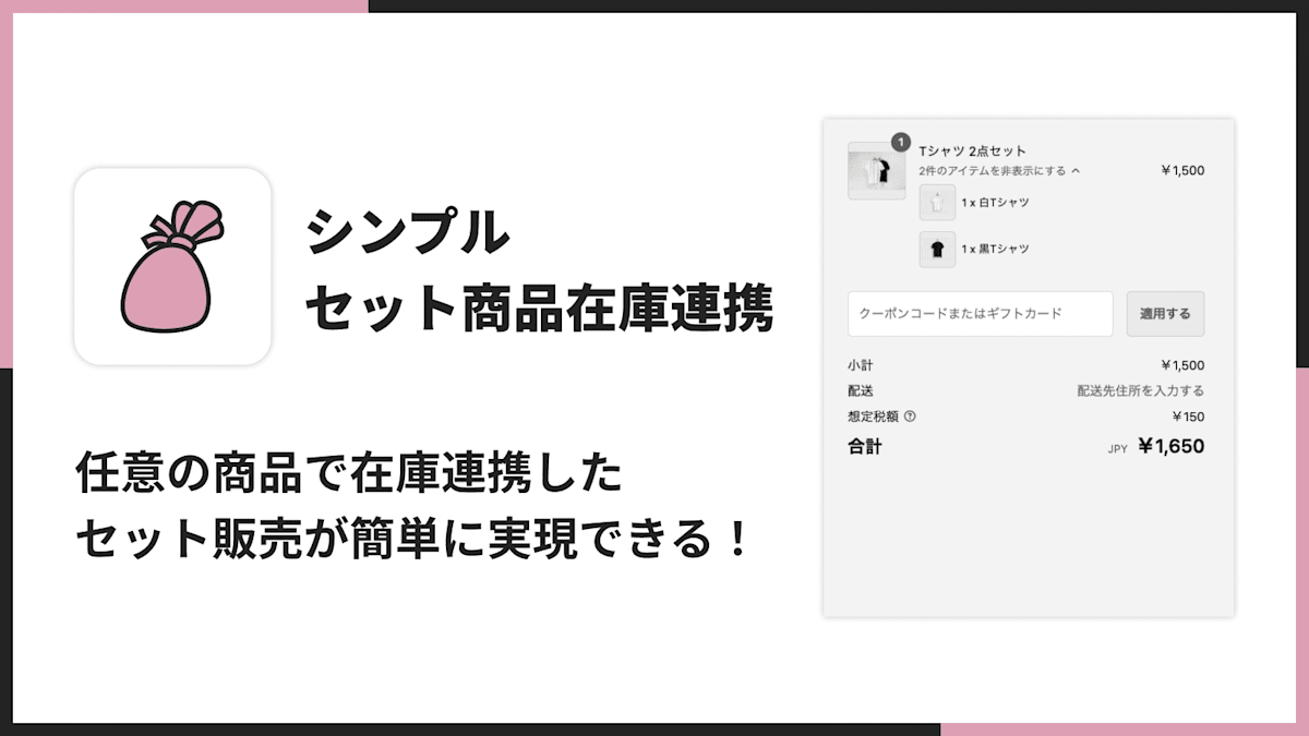 こちらもセット販売(クロスセル)が実現できる日本製のアプリです。ひとつ上ので紹介したアプリとの一番の違いは、商品としてのセット販売を行いつつ、単品商品との在庫連携ができるという点です。