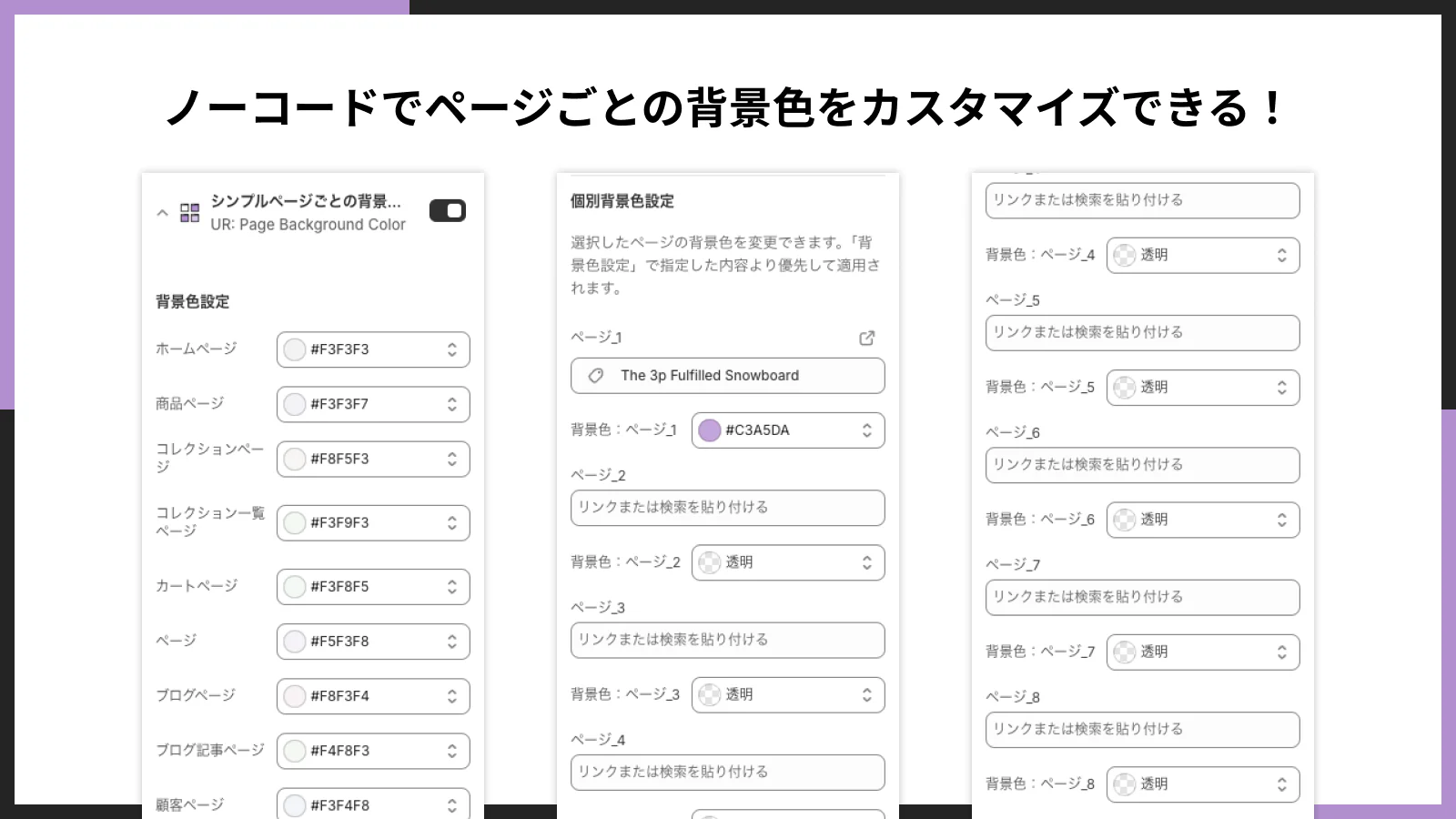 - ノーコードでページごとの背景色をカスタマイズできる