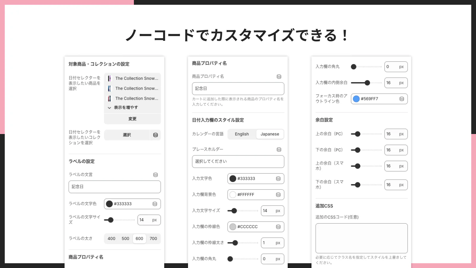- コード不要で日付セレクターのスタイルを変更可能