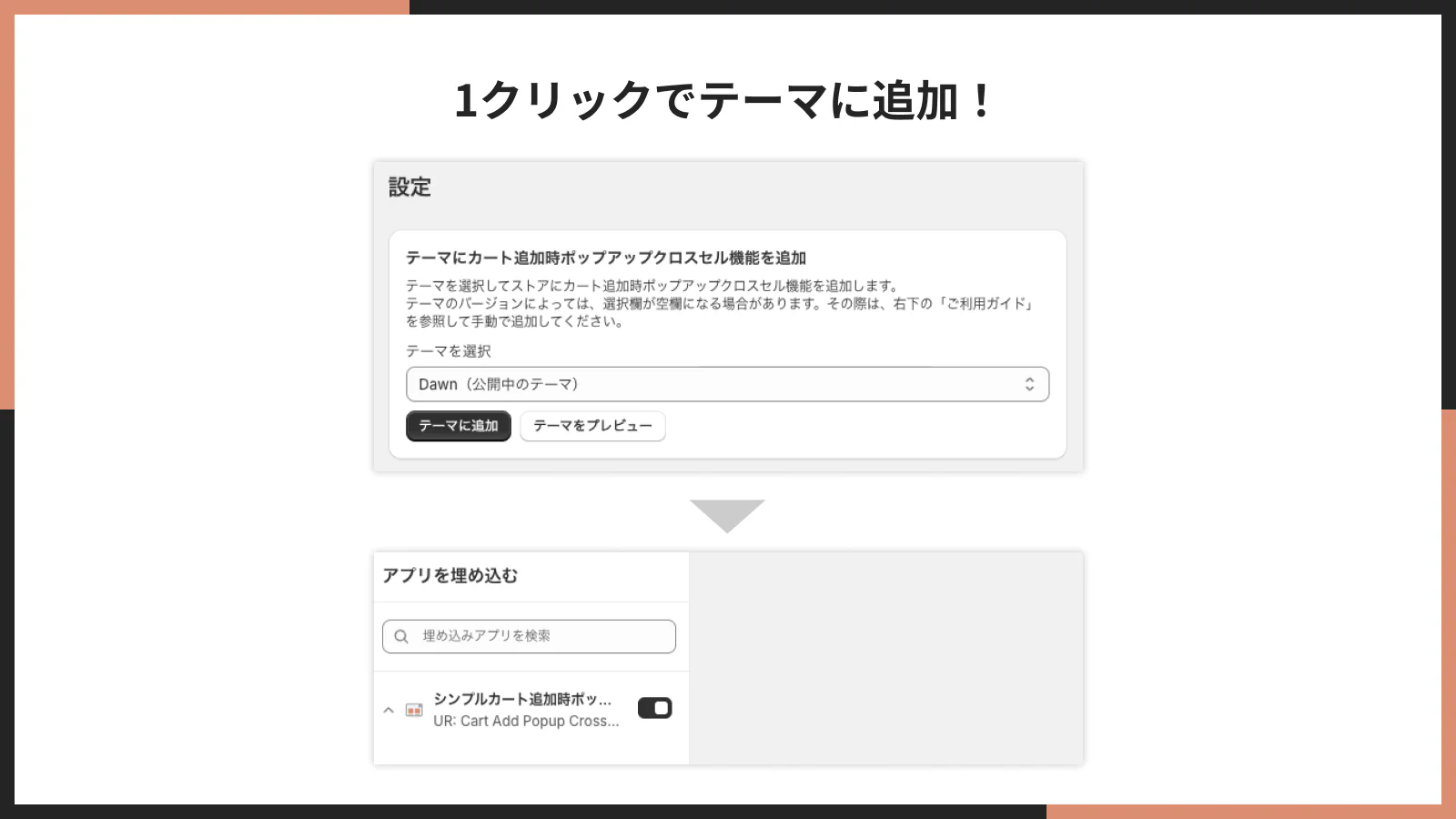 ここからは、シンプルカート追加時ポップアップクロスセルアプリの機能の概要について解説します。