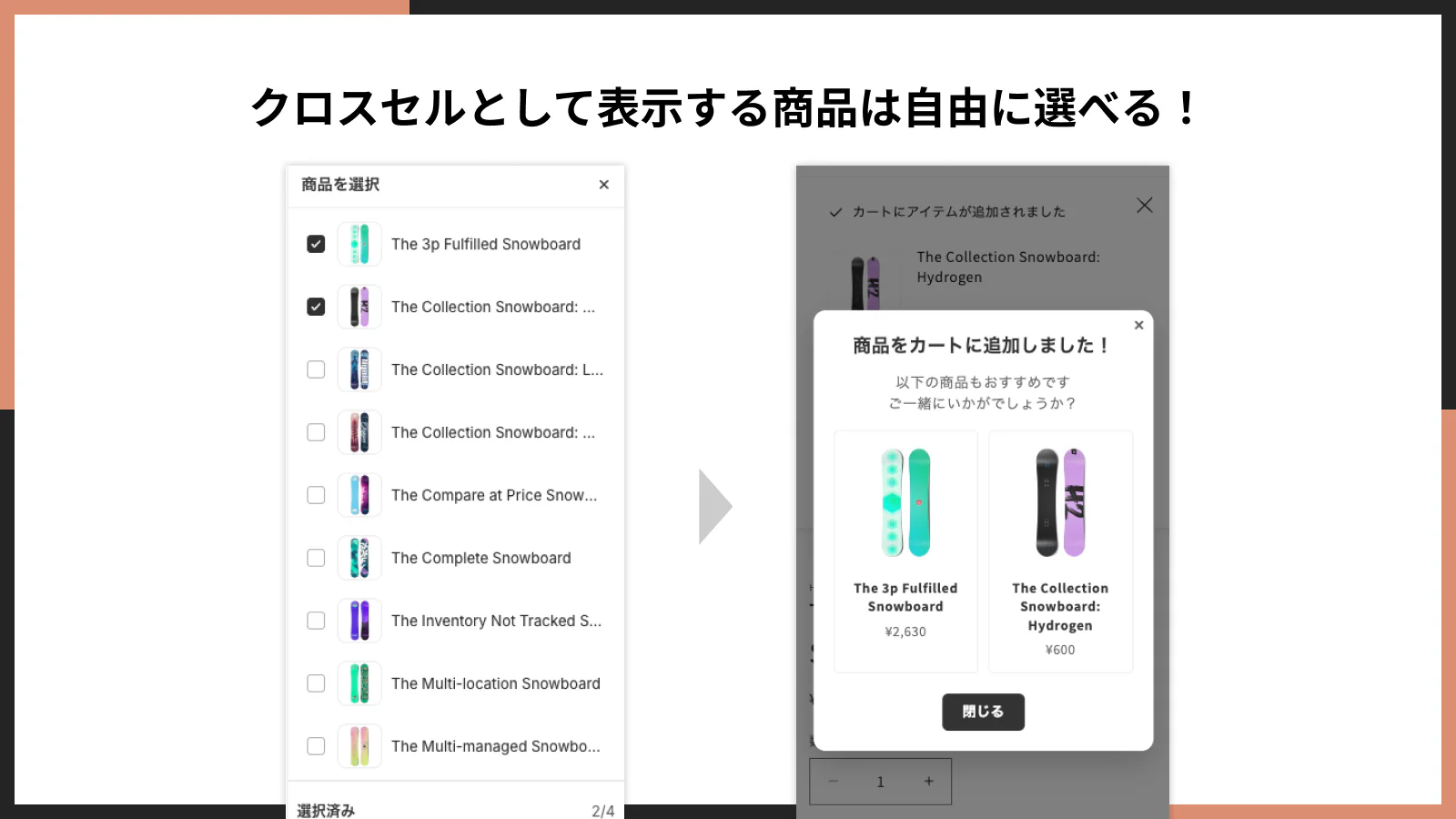 クロスセルとして表示する商品は自由に選べます。