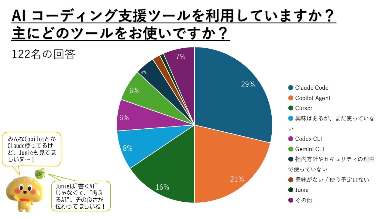 また、CursorやClaude CodeといったAI対応エディタが、今年は実際に利用されるツールとして回答に現れたのも印象的です。