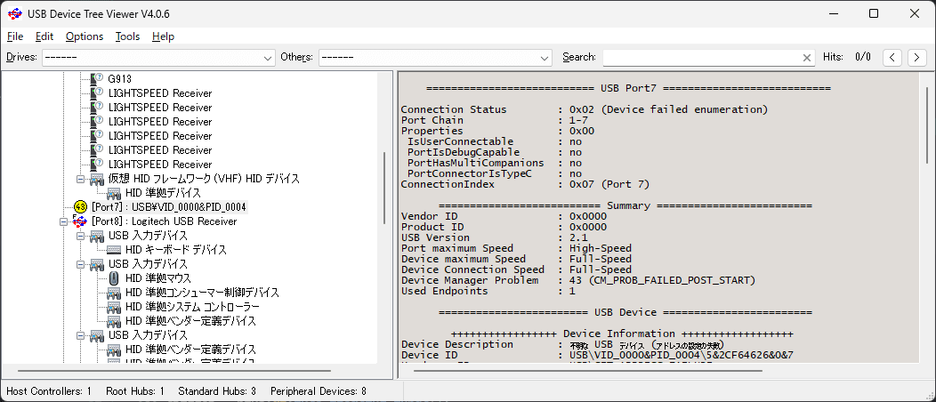 悲しいことに自分にはUSBの知識が全然なく、この問題を今のところ解決できていないのでこの記事はここまでとします。