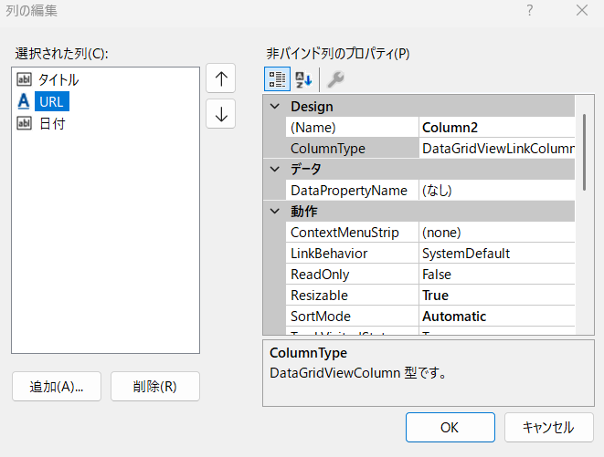 DataGridView:記事一覧表示(タイトル・URL・日付など)