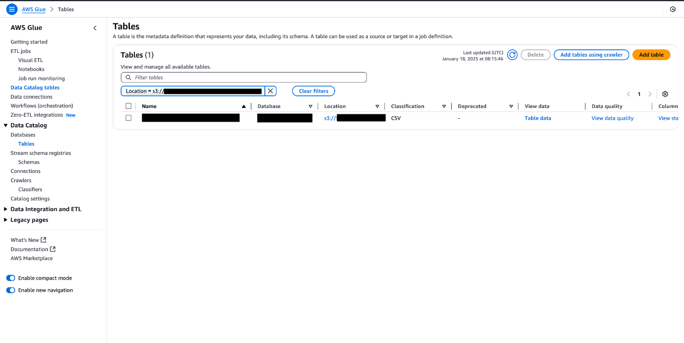 AWS Glue Data Catalog でTableを作成する