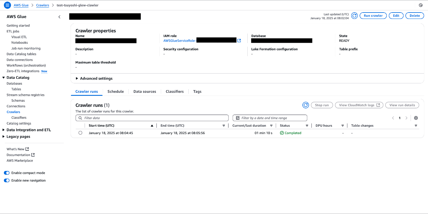 - AWS Glue>Data Catalog>Crawlers>test-structured-data-retrieval-glue-crawler