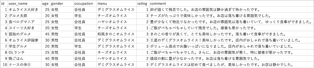 また、以下のCSVファイルを作成して1つのテーブルとしていきました。