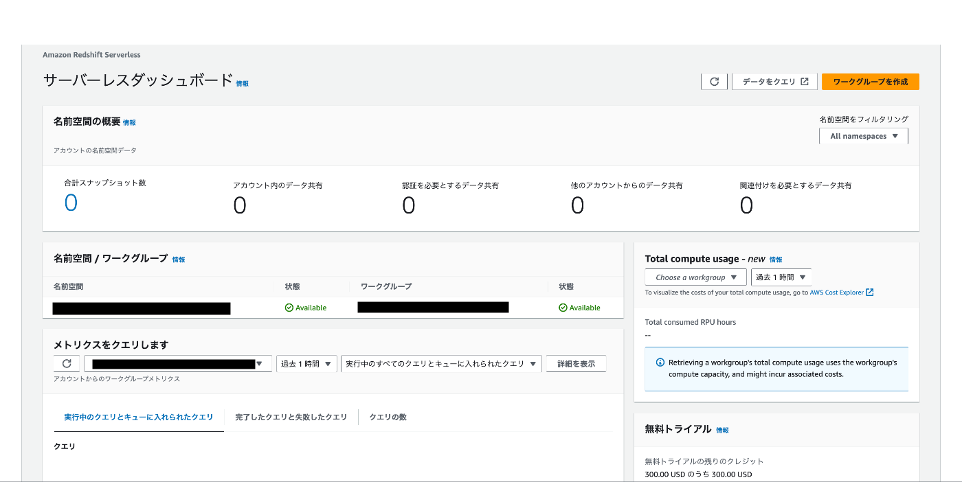 - Amazon Redshift Serverless>ワークグループの設定>ワークグループを作成