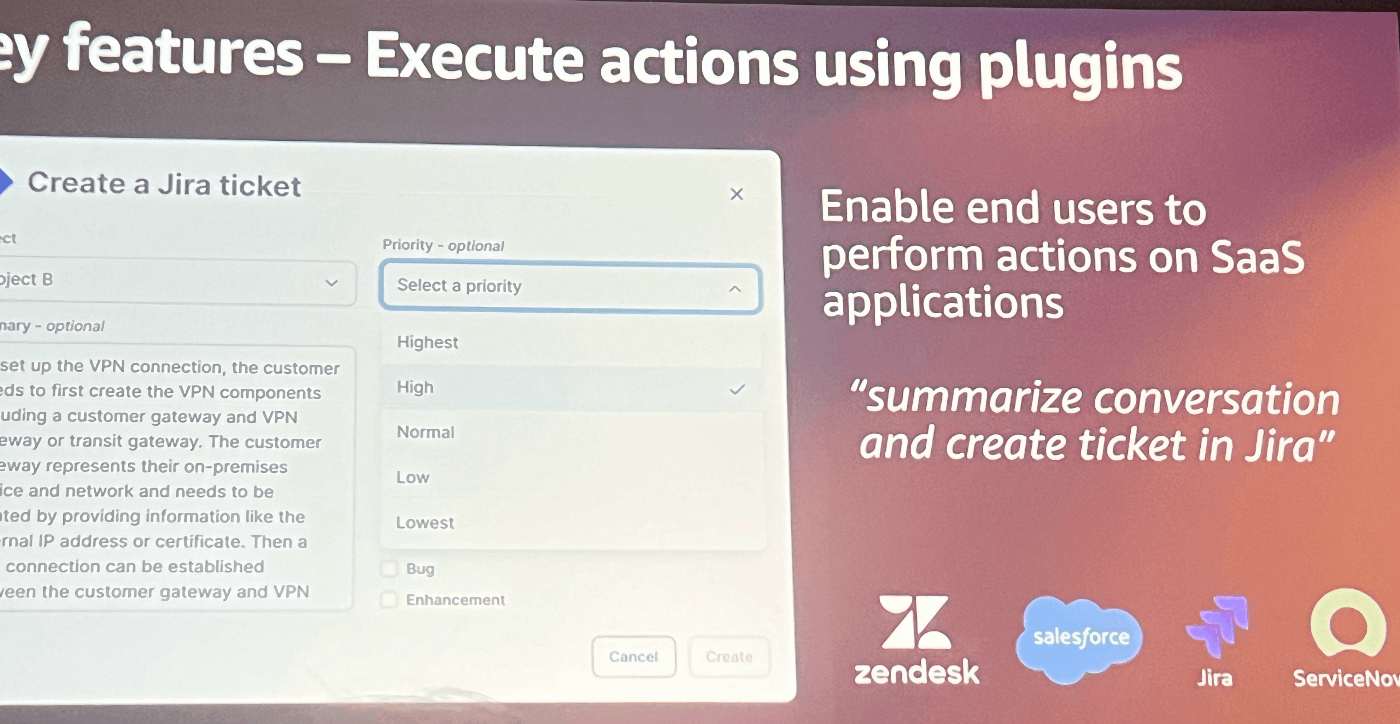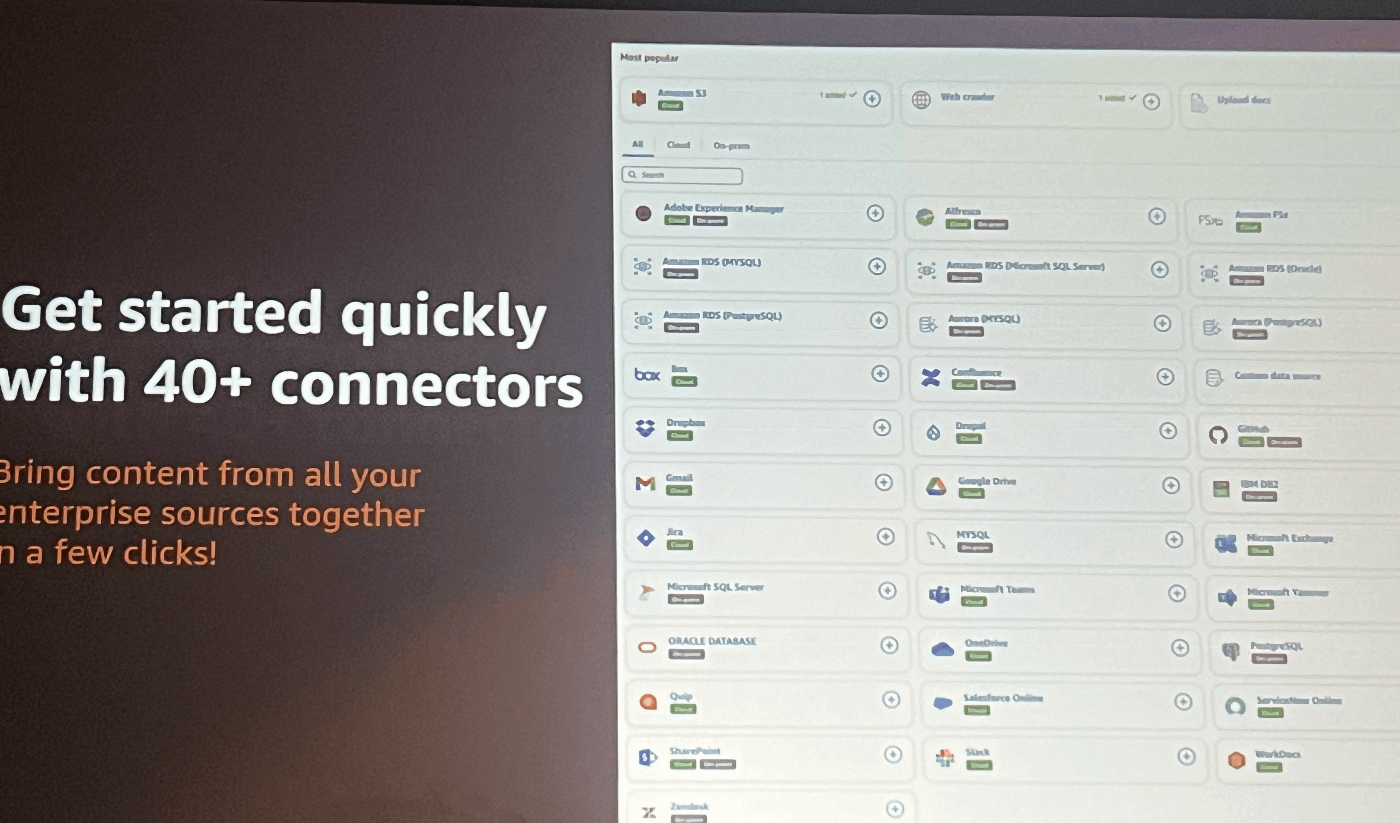 • これを使用して従業員の生産性を向上させ、従業員は Q&A (Web アプリケーション) を通じて質問に対する回答を得たり、必要な情報を見つけてビジネス上の問題を解決したり、企業や社内の製品にあるデータや専門知識に基づいてコンテンツを生成したり、アクションを実行したりできる。