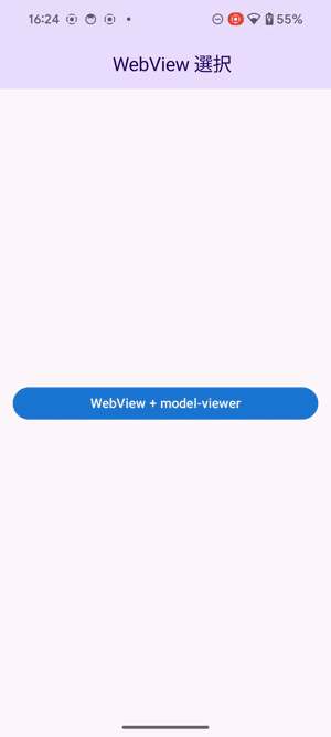 構成としては、アプリ内に WebView を配置し、その中で <model-viewer> を使用した HTML を適当にベタ書きして試してみました。