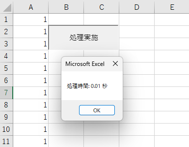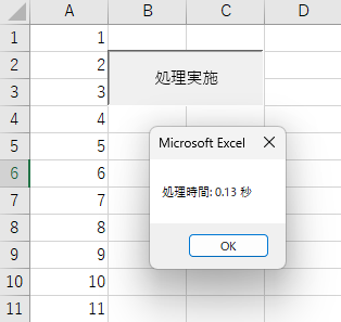 開始時刻と終了時刻を記録し、結果をmsgBoxで出力します。