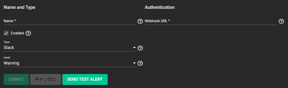 TrueNASがサポートしているアラート送信方法を確認していると、Slack の文字を発見した。