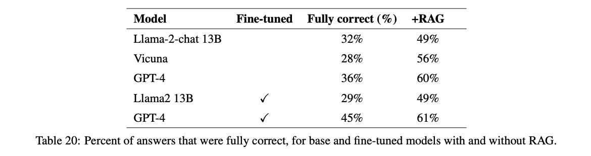 - RAGにより+24%、Fine-tuningにより+9%、RAG+Fine-tuningにより+25%精度向上。