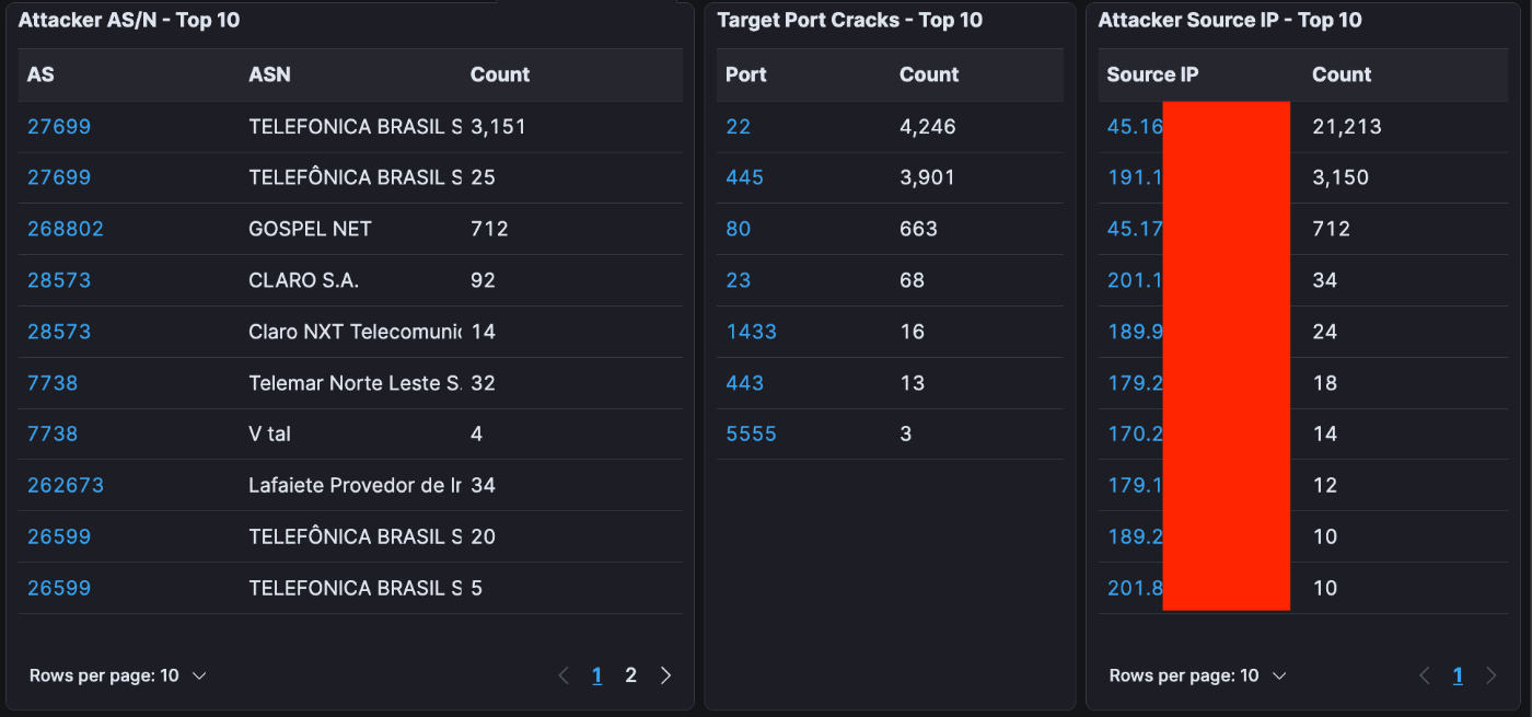 ブラジルからの攻撃は10/14に集中しているものの,攻撃元が KnownAttackerとbot,form spammer に分かれており、攻撃元IPのASN情報を見ると複数ASNから攻撃が来ていることもわかります.
