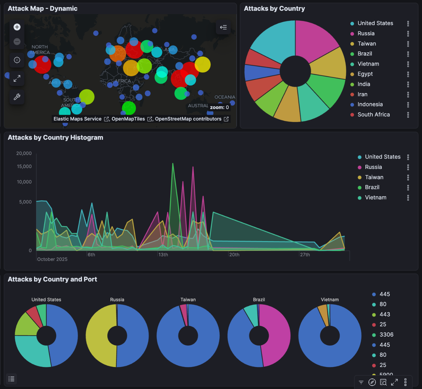 先月と比較し, エジプト, イラン, ブラジルが攻撃数上位にランクインしました.