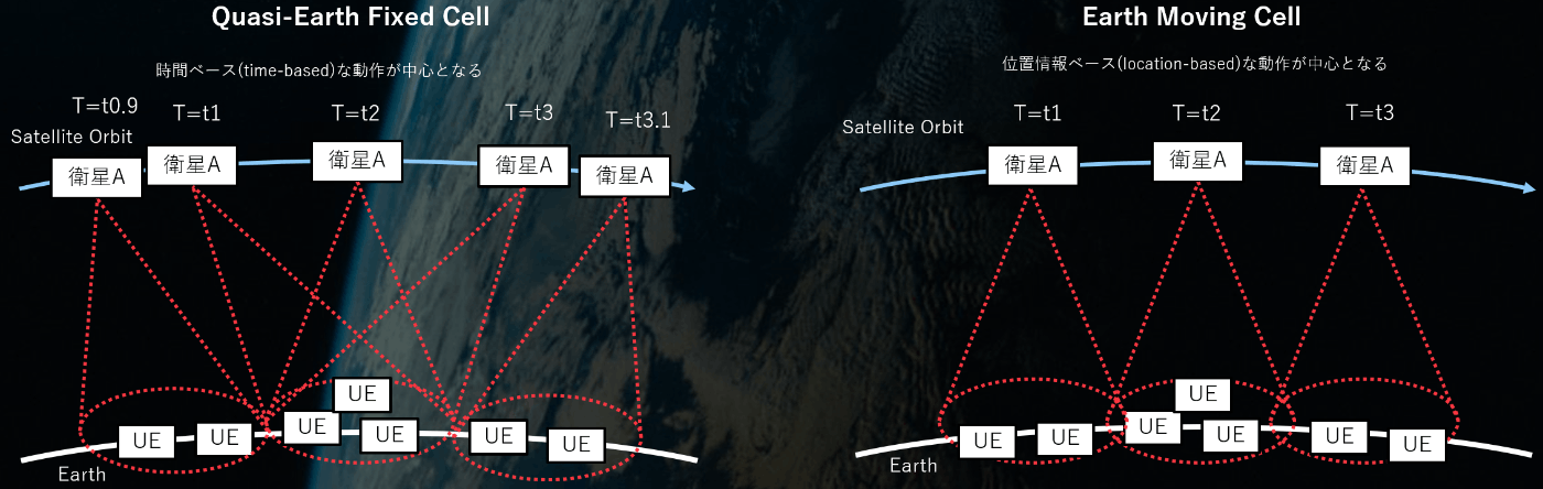 - NGSO衛星:準地球固定(Quasi-Earth-fixed)、地球移動型(Earth-moving)