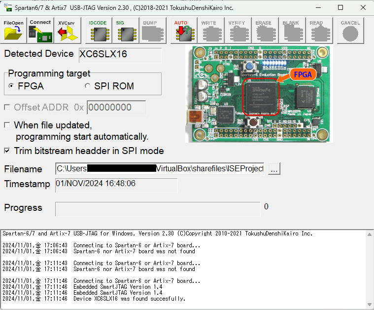 USBでFPGAに書き込む(Spartan6 Evaluation Board使用の場合)