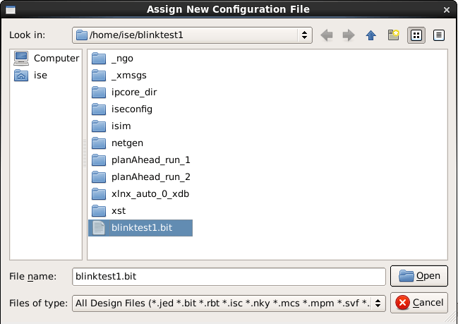 - "FileOpen>Open a new file"でVirtualBoxと共有しているフォルダの中にあるさっきの.bitファイルを選択する