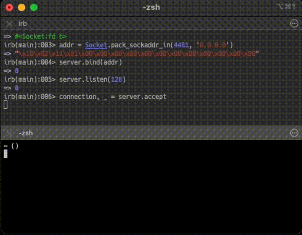 便利なことは間違いないけれど、近年だと irb がすごく便利になっているので、学習のときはそこから眺めるのがコンテキスト切り替えが少なくて嬉しいかもしれない。 Socket.new