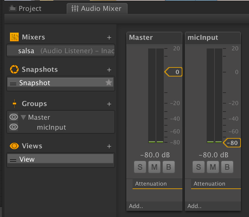 Mixerを作ります。Projectorビューで右クリックをして、Create > Audio Mixerから作成できます。