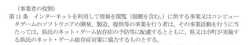 問題は、ゲームソフトを提供する事業者等に対しても上記の条例に対して協力する義務を課せられる可能性があります。可決されたら令和2年4月1日より施行されるため、開発者としては早急に今後必要な対策が気になるところです。