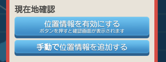 GPSでの位置情報取得に加えて、「手動で位置情報を追加する」ボタンも設置しています。
