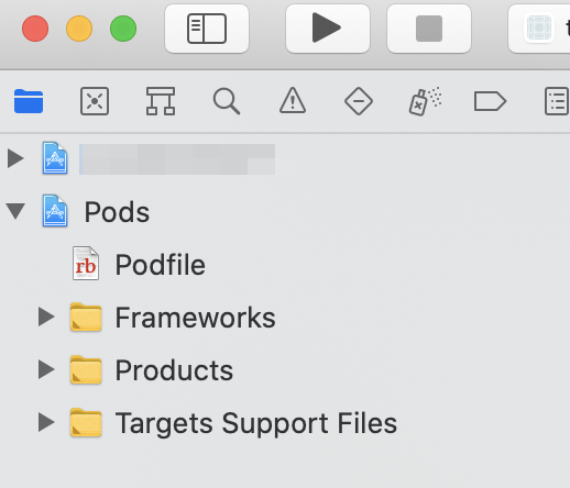 もし、Xcodeで(プロジェクト名).xcodeprojを開いている場合は、それを閉じて(プロジェクト名).xcworkspaceを開いてください。以降はxcodeprojを使わずにxcworkspaceを使うことになります。