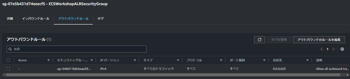 ALBのSGを確認するとすべてのアウトバウンドが許可されているので、良し悪しは置いといて問題なさそうです。