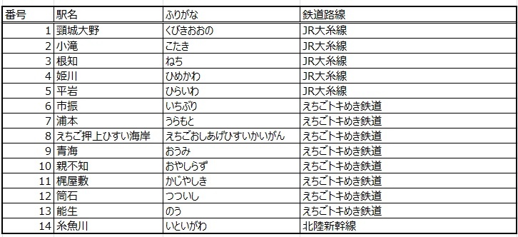 糸魚川市内にある駅のデータを使ってエクセルVBAのマクロを作成しました