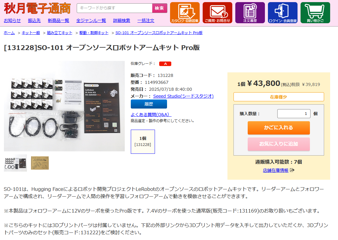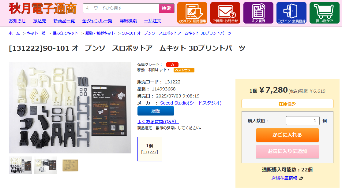 秋月さんのは在庫も少なく、金額もでかいので、ロボットスタディオンさんから買った方が良いです。
