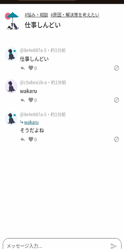 ”心の荷物を言葉にできる場所”をミッションにした匿名型のコミュニケーションプラットフォームです。