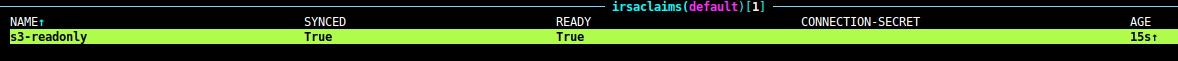 $ kubectl get irsaclaim s3-readonly -n default -o jsonpath='{"Role ARN: "}{.status.roleArn}{"\nPolicy ARN: "}{.status.policyArn}{"\n"}'