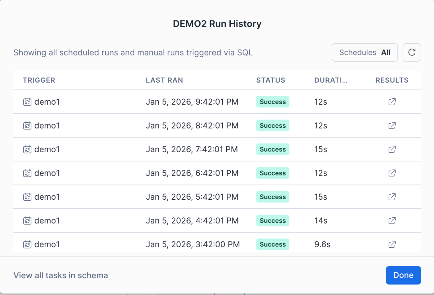 私自身、Snowflakeにまだ詳しいわけではありませんが、この操作感であればSQLやデータ基盤の知識がそこまで深くない方でも、スケジューリング設定を簡単に行えると思いました。